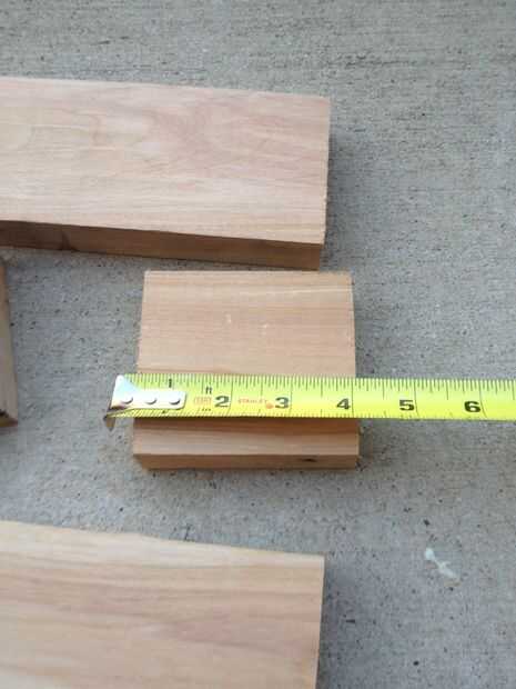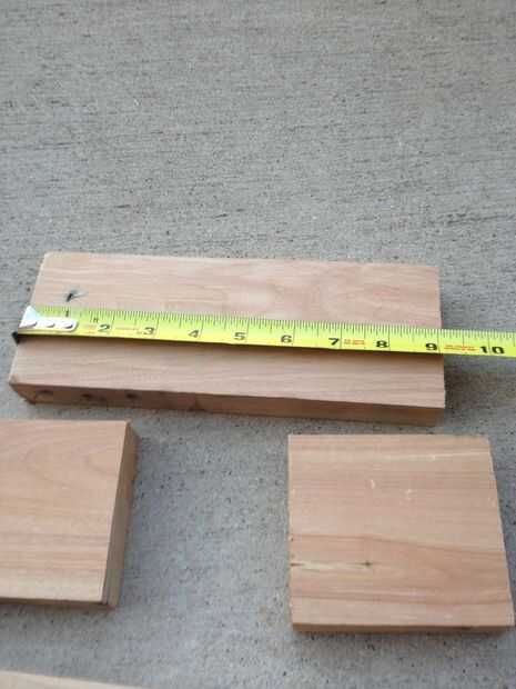 Tomé la madera a mi tronzadora y comenzó a cortar. Ningún plan real aquí sólo corta las tablas de cómo pensé que deben ser cortadas. La cabeza del macillo será amplia tres juntas. Los tableros de exterior será una paz 9 pulgadas de largo. el las juntas de centro se cortará en dos cada 3,5 pulgadas dejando un espacio para el mango.