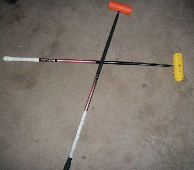 hay una serie de diferentes métodos para la construcción de un mazo de polo de la bici, y ha habido mucha innovación en los años. Empezando con la mitad de una muleta, de bambú, bastones de esquí con inserciones de madera, a la moderna construcción d