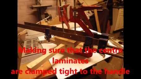 Envuelva la parte superior de la manija con cinta de celofán para dejar el pegamento se adhiera a él después pegamento para arriba y asegurándose de que los laminados interiores estén apretados al mango de la abrazadera