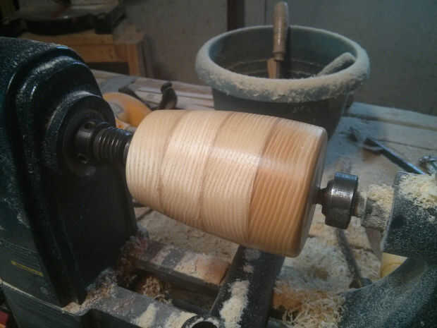 Girando la pieza, retirar regularmente a pesar de él, menos una onza para la perforación que se se hacia fuera más adelante. La forma general es cónico en un extremo (el inferior) y más ancho en su extremo superior.