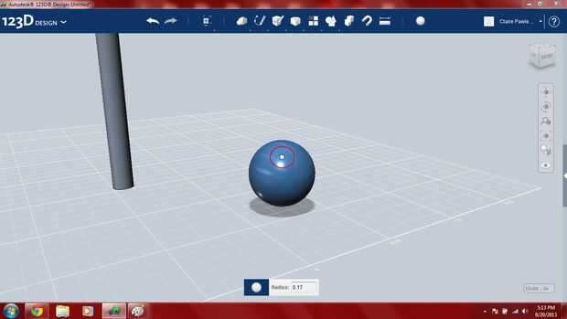 A continuación, crear una esfera con un radio de 0.5 de pulgada