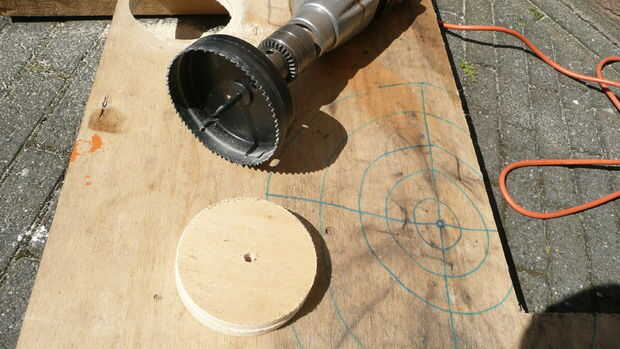 B: Entonces vio un agujero en el centro de este disco con lo 4 cm (1,5 pulgadas). Asegúrese de que tiene un agujero ligeramente más pequeño que el diámetro del tubo de PVC (no demasiado grande).