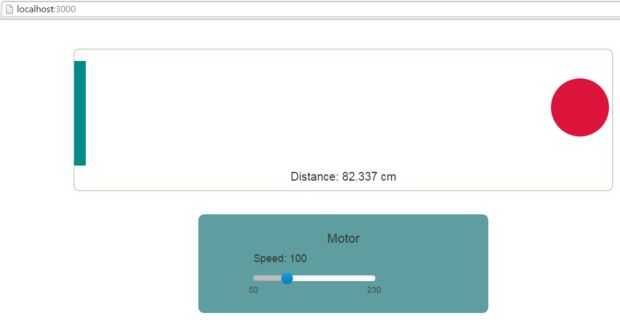 Se reproducirá sonidos diferentes dependiendo de la distancia entre el sensor sonar y obstáculo, y después la bola roja se mueve en consecuencia. Distancia y la velocidad del motor se muestran en la interfaz web.