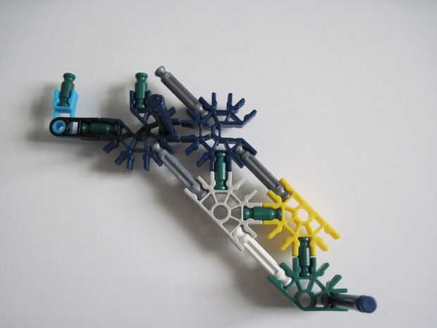 Image 1: Make 2. Imagen 2: Hacer 3. Imagen 3: Agregar barras de azul que se muestra. Imagen 4: Añadir 3 de las partes hechas antes como se muestra. Imagen 5: Añadir la anterior hizo parte como se muestra.