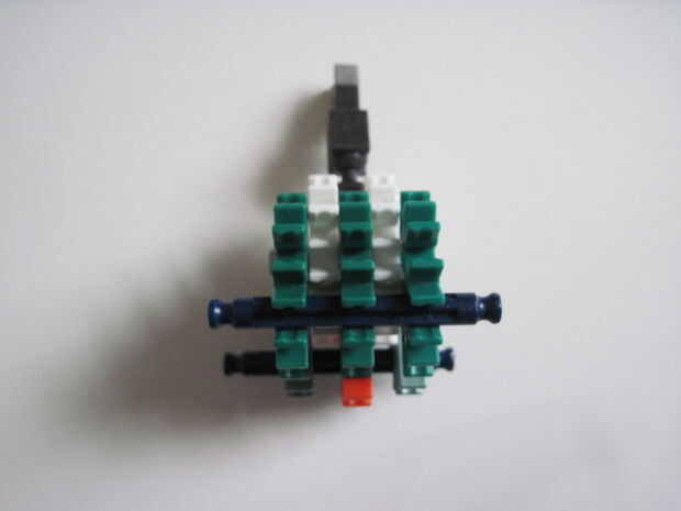 Imagen 8: Fije una barra blanca en el mango frontal del cañón y el clip y de la articulación de la barra blanca como se muestra.