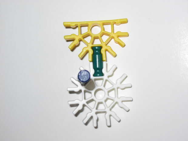 Image 1: Make 2. Imagen 2: Hacer 3. Imagen 3: Añadir la barra azul. Imagen 4: Añadir tres de las piezas mostradas en la imagen 2. Imagen 5: Añadir la última parte.