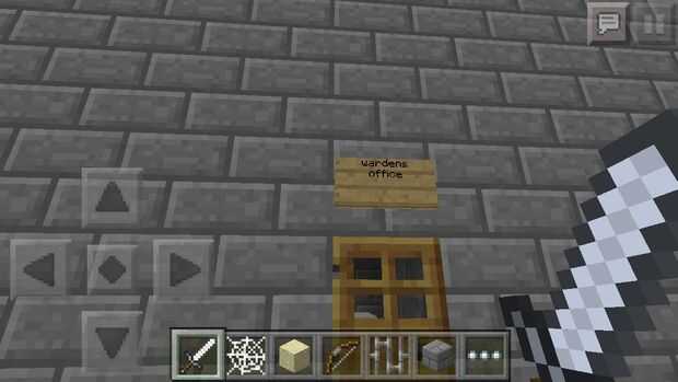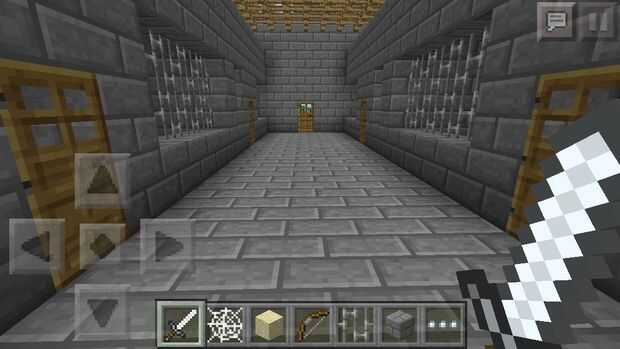 Hacer el interior pero recuerda hacer 2 pisos para las células. El techo de la planta debe ser alta 6 cuadras y el techo debe sólo cubierta 18 bloques Asegúrese de que el techo cubre el lado vas a poner la cocina y duchas. ¡ Ahora tiene espacio para 8 celdas!