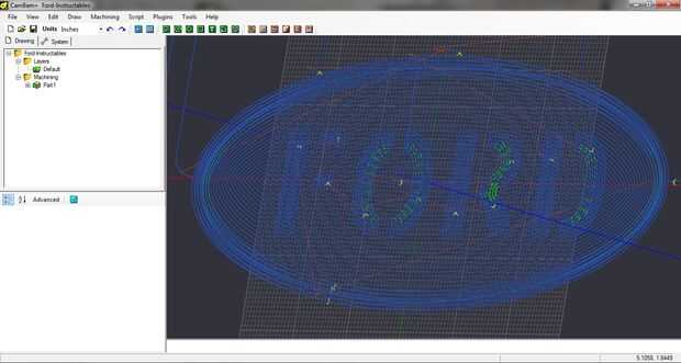 Utilizando una fresa de un octavo que hice un bolsillo entero corte a una profundidad de 1/16 de pulgada, seguido por un más 1/16 profundo bolsillo cortado de la frontera y el texto.