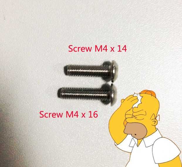 La mayor parte de trabajo al ensamblar el mEggBot era encontrar los tornillos de la derecha y hacer el codazo. He cometido algunos errores al encontrar los tornillos correctos puesto que había 5 tipos de tornillos de longitud diferentes, especialmente tornillo M4 x 14 y tornillo M4 x 16 que eran casi la misma longitud.