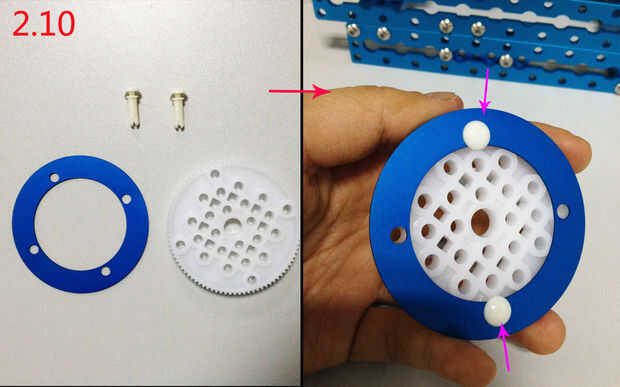 2.9) montar la placa y el rayo utilizando 2 tornillos y 2 tuercas. Y luego la parte montada en la base con otros 2 tornillos y 2 tuercas.