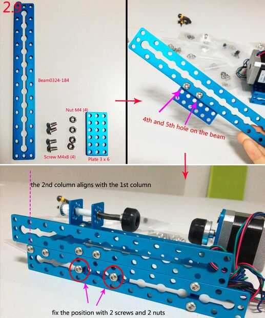 Nota: Al añadir la parte montada en la base, asegúrese de que la columna 2 de la viga superior se alinea con la 1 columna de la viga inferior.