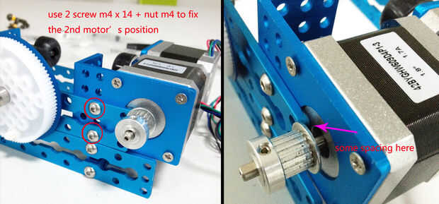 2.12.3 fijar el motor 2 en el cuerpo principal de la mEggBot usando 2 tornillos m4 x 14 y 2 tuerca m4.