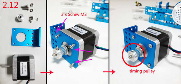 2.12.1 - armar el 2 ° motor y montarlo en la base. Para este paso, se necesitan sólo 3 tornillo M3 para el motor