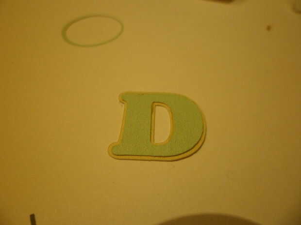 Cada letra se compone de 2 capas - la base marrón y la capa superior de color. Cortar cuidadosamente los caracteres adecuados y unir de la misma manera como los demás elementos.