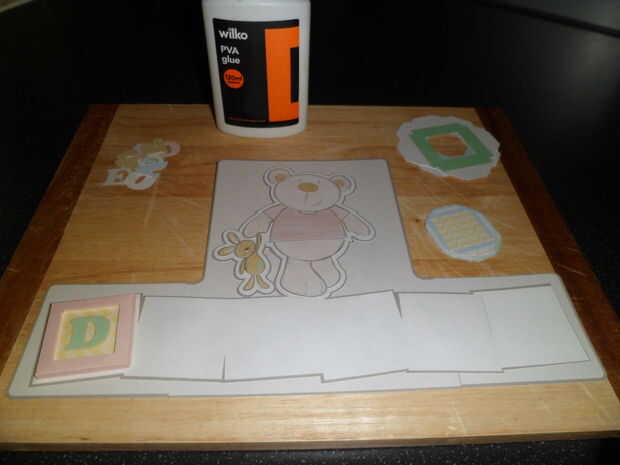 Cuando esté seco, pega cada letra en el interior de cada bloque.