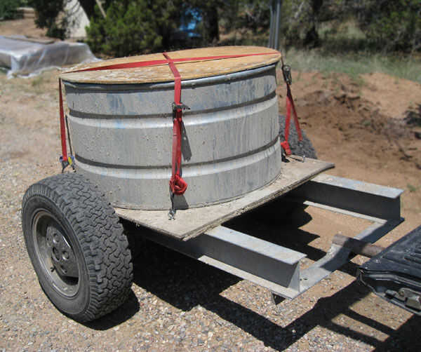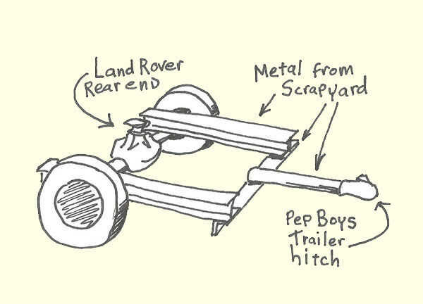 El primer paso fue montar el remolque. Necesitaba un artilugio que bien podría llevar varios cientos de galones de agua. Yo galvanizados vigas que manera más pesado deber que necesitaba para construir el trailer, pero bueno, eran bastante baratos en la yarda de la chatarra y sobre la longitud que necesitaba ya. Yo soldando les junto con la parte trasera de un Land Rover para crear el marco. Una vez que sueldan con autógena en un enganche de Pep Boys tenía un remolque. Puede obtener la idea de la primera ilustración.