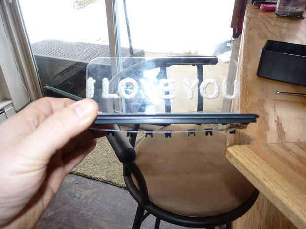 Para determinar donde necesitaba perforar mi el LED puse el soporte LED encima de mi "te amo" signo de plexiglás y había marcado el centro de cada letra.