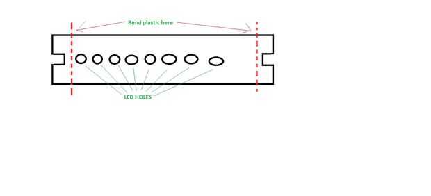 Para lucir el LED's debajo de cada letra que utiliza un método rudimentario pero eficaz de simplemente montar el LED de una tira de plástico y pegar bajo el signo de plexiglás así brillo de los LED directamente bajo el plexi.