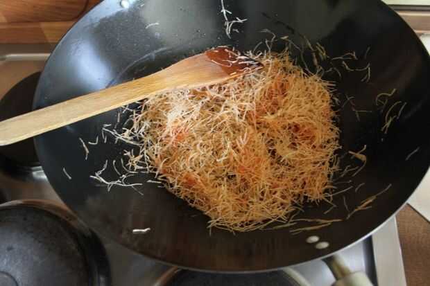 Me Grob-frito tallarines del arroz en salsa agridulce y dulce (7 / 8 paso)