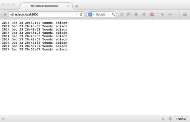 Voilà! Puede ver los registros de contacto de su red local! Abrir su ordenador o tableta explorador en http://youredisonaddress:8000 / y empezar a divertirse!