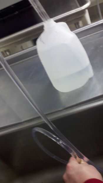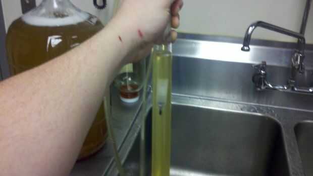 Agregar 5 cucharaditas de la mezcla de ácido. Tomar una lectura con el hidrómetro