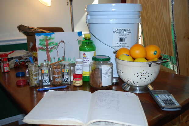 Los ingredientes de la imagen 1 están todo lo que necesitas para hacer un mead fino. Equipo no se muestra aquí son: agua purificada, un cilindro de muestreo, tiras de pH, hidrómetro, un protector de salpicaduras de malla limpia, embudos, hervir los vasos, brocal cerraduras, tubos, bolsas de aire, fermentadores primarios y secundarios. También usted debe obtener un filtro Vinebrite.