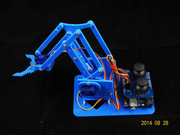 En este Instructable le mostrará dos maneras de controlar su MeArm, primero es con arduino solo y segundo wil necesita 4 potenciómetros.Paso 1: materiales 1. MeArm2. Arduino o cualquier clon de ella3. 4 potenciómetros4. Protoboard y puentes o los cab