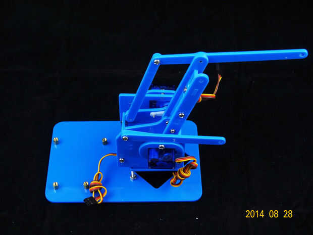 En este Instructable le mostrará dos maneras de controlar su MeArm, primero es con arduino solo y segundo wil necesita 4 potenciómetros.Paso 1: materiales 1. MeArm2. Arduino o cualquier clon de ella3. 4 potenciómetros4. Protoboard y puentes o los cab