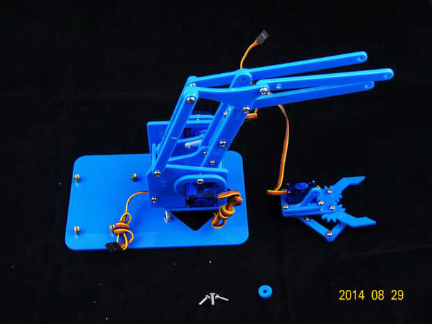 En este Instructable le mostrará dos maneras de controlar su MeArm, primero es con arduino solo y segundo wil necesita 4 potenciómetros.Paso 1: materiales 1. MeArm2. Arduino o cualquier clon de ella3. 4 potenciómetros4. Protoboard y puentes o los cab