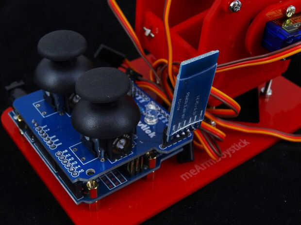 使用藍牙前要先跟手機配對, 之後再打開meArm_bt APP, 按下紅色藍牙圖示來跟藍牙連線, 若有成功連線, 則藍牙板上紅燈就長亮而不閃爍, 而且APP上的藍牙圖示也會變成藍色, 這時就可用手機操控手臂了, 結束時記得再按一次APP上的藍牙圖示離線喔。 之後每次開APP要操控手臂時就只要連線即可, 不用再配對了。