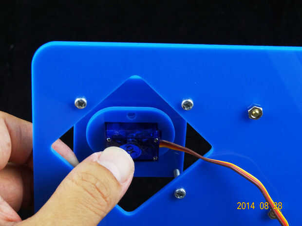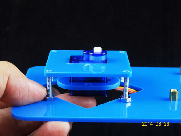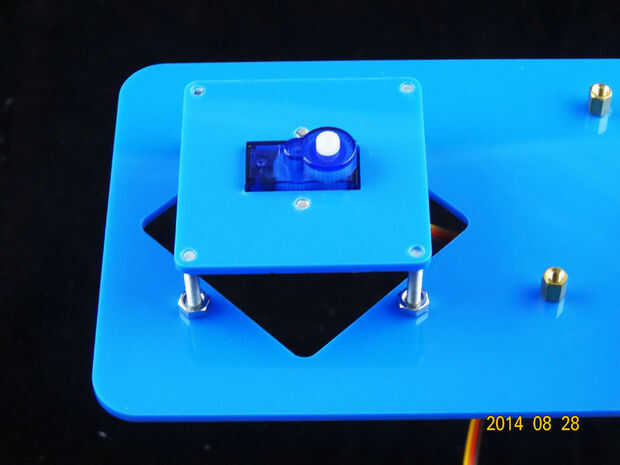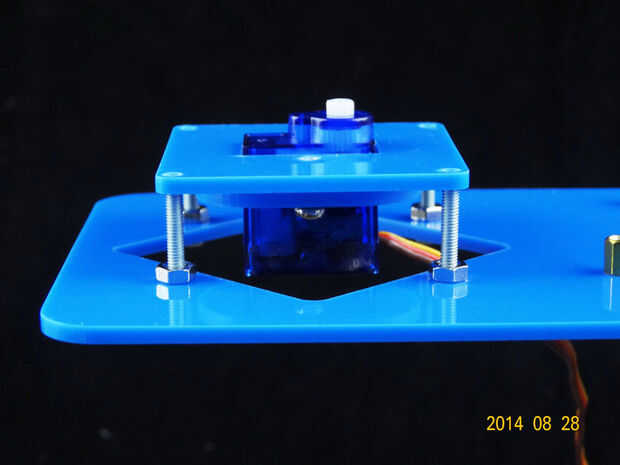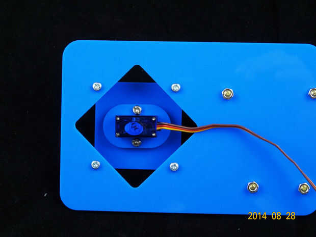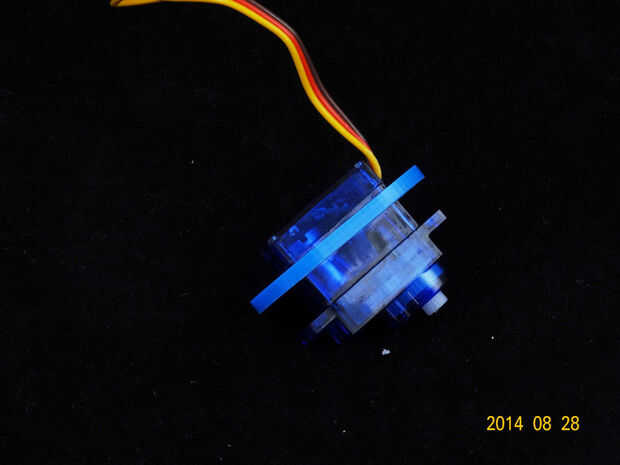 注意:如圖一, 第一顆馬達要選4顆中白色軸心最長的。 裝每一顆馬達時, 角度都有講究, 記得要按照說明組裝喔。 (有講究的意思是馬達自由角度僅1 ~ 179度, 只能轉半圈, 故要確保範圍內的旋轉自由度。 )