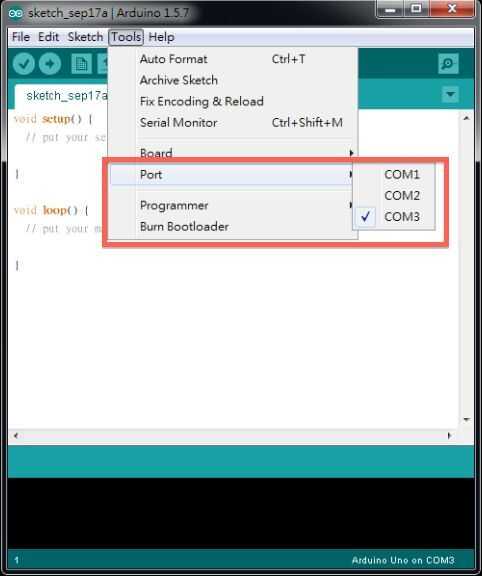 3) Seleccione el puerto correcto. (COM3)