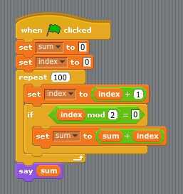 "Loop" es tan poderoso. Vamos a intentar añadir sólo números dentro de 1 a 100.