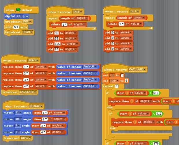 Este proyecto se deriva de bolsillo tamaño de brazo de Phenoptix de Robot.此專案源自於此, 但我加上搖桿和教程, 希望對大家有幫助.software de 30 lecciones (C/S4A/Ardublock) .30餘堂軟體課程在此 (C/S4A/Ardublock) .若要洗搖桿擴展板, 有附Eagle原始檔, 若要自行雷切, 請下載附件PDF, A4尺寸壓克力板即可. de 3mm 選擇 本 也附 BRICOL