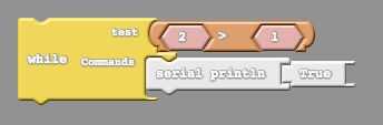 不管任何程式語言, 迴圈都是如此的重要, 所以在此要再介紹迴圈的另一種格式 while。 這指令的要點就是如果條件為真, 就一直做到天荒地老。 像本例的條件(2 > 1) 永遠為真, 所以就會永遠一直印出字串 "true".