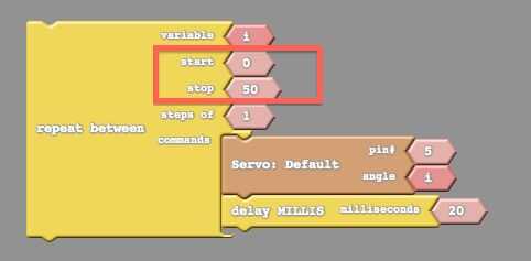 Paso 31: 試一下第四顆馬達, 但只能 0 ~ 度 50