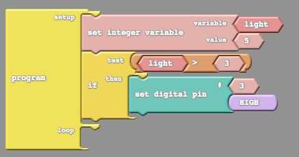 通常我們會將變數跟 "如果" 搭配使用, 例如本例中的 luz 變數, 它可能代表的是光線亮度, 當我們在判斷是否開燈時, 就可根據 luz 值, 例如此例若 luz 值小於 10 就開燈。