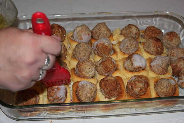 Hilvanar los deslizadores de albóndiga hasta que te quedas sin mantequilla y especias.