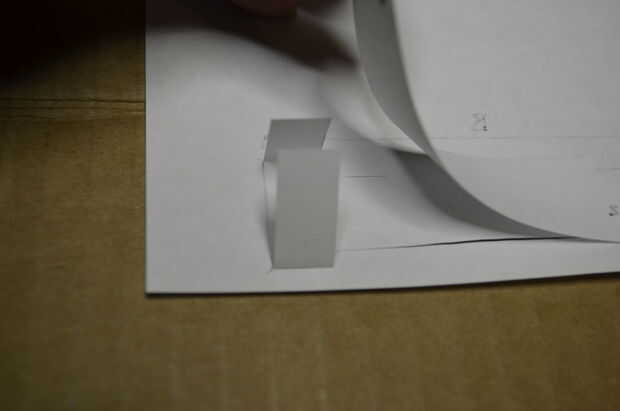 Una vez tengas dos dobleces, pegar la tira en la parte posterior de la vivienda, entre la ranura de la lengüeta y la tira de guía.