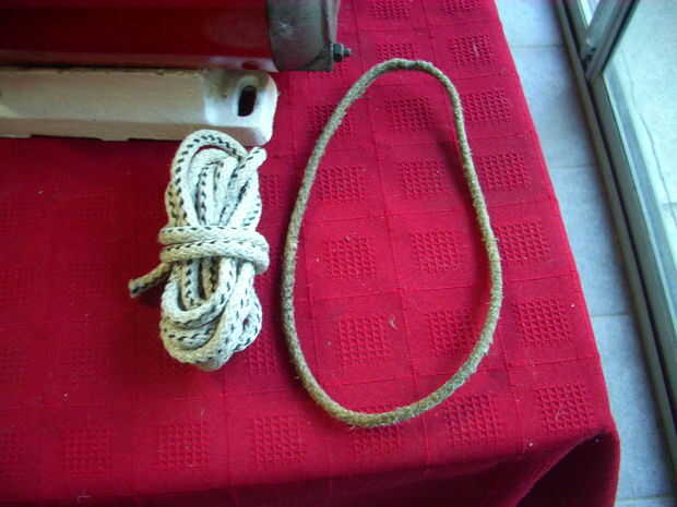 En primer lugar hice una prueba con una correa hecha por mí: de la nylon tomé un trozo de soga de 8 mm, lo corté a medida, uní los extremos mediante soldadura plástica, funcionó y duró... unos segundos. Luego de dos o tres intentos desistí de ese método, y cosí los extremos con hilo resistente. Luego impregné la flamante "correa" con adhesivo de caucho y lo dejé secar horas de varias. Lo probé y ahora aguantaba mucho más tiempo, pero comprobé luego de un rato, al calentarse un poco, el adhesivo de caucho empezaba a aflojarse.