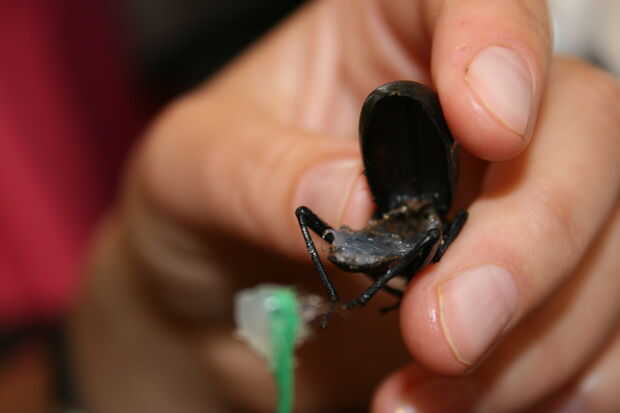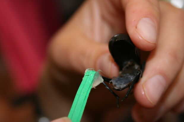 Llene la cavidad de tu escarabajo con adhesivo de silicona. Pulse en el tren de engranajes.