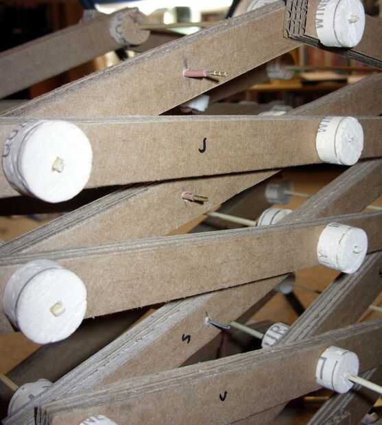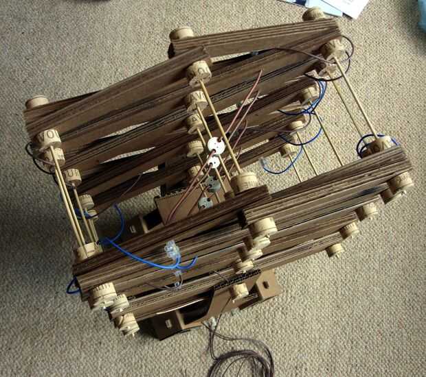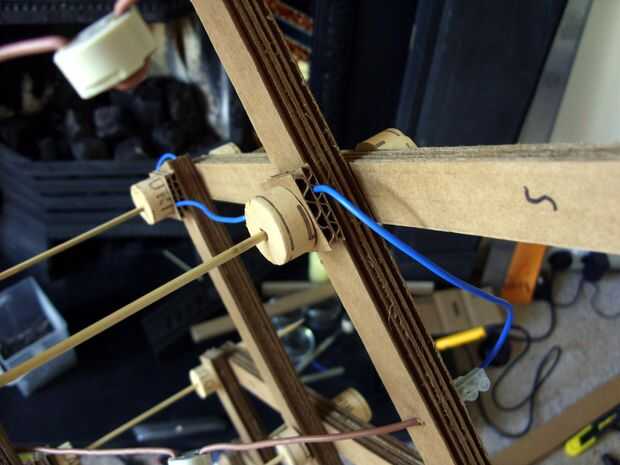 Los cables pueden ser gestionados por deslizamiento a lo largo de los tubos en las costillas acanaladas para mantenerlos aseados, pero para cualquier ruta que no recorren toda la longitud de un puntal (como por ejemplo el cambio de dirección) a menudo puede ser un pequeño segmento de enroscarse en el de los pinchos de cartón corrugado utilizado, o simplemente pegado sobre un puntal si las necesidades ser. Si usted se siente perezoso puede sólo viento les ronda los pinchos como vas, pero estará desordenado.