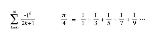 Puesto que queríamos trabajar con simples calculadoras digitales que decidimos ir para uno de los métodos más simples como la «fórmula de Leibniz». La fórmula de Leibniz es una serie infinita de adiciones y sustracciones de cocientes. Cada denominador posterior de esta serie es la suma de las anteriores una más dos, a partir del valor uno. Eso es todo. Tomamos un vistazo a lo que sucede con estos cálculos y trató de romper hasta su núcleo.
