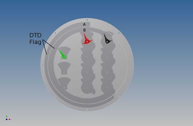 a continuación aplicaremos la bandera de bit DTD (la unidad de control) en forma de dos pistas. Si la bola va en pista A, DTD es falso. Si su canción en B, entonces DTD es cierto.