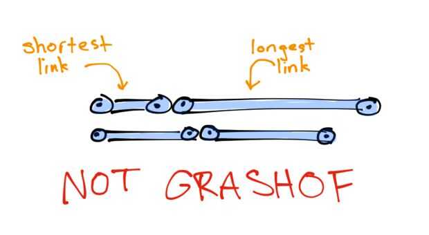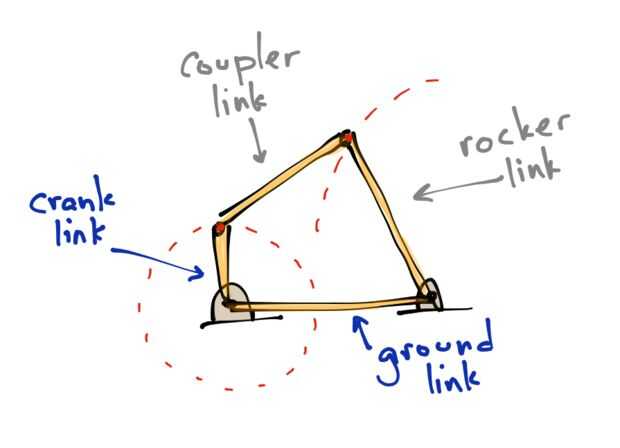 El enlace que hará girar alrededor continuamente se llama la manivela de enlace (es el más corto), el que permanece anclado en el lugar se llama el enlace de la tierra (puedes elegir que uno desea para esto y va a cambiar cómo se mueve).