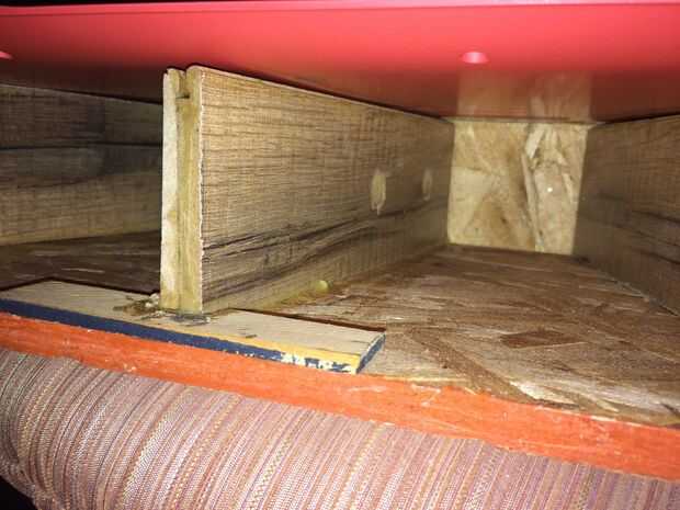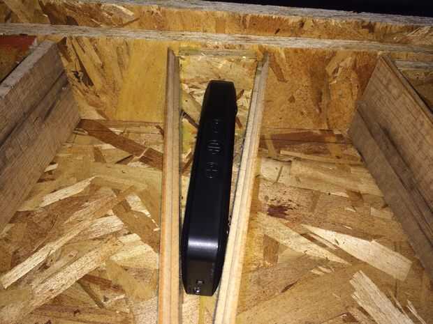 Taladro 2 agujeros con un iLuv bluetooth altavoz a cada lado de las juntas horizontales del centro. Deje caer el iLuv en el espacio. Sincronizar el portátil con los altavoces manteniendo pulsado el botón del medio en el iLuv. El resultado: buena amplificación con bajos profundos y experiencia mini cine en casa.