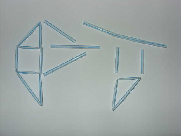 Con cinta adhesiva, unen las piezas. Un par de patas está formado por dos módulos, en una posición de espejado, vinculados por el brazo "a".
