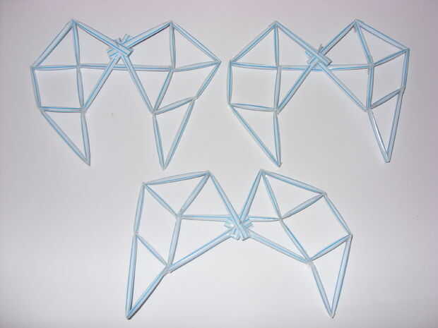 Tenga en cuenta que los dos extremos de los brazos de cada "j" y "k" se aplane en planos perpendiculares.