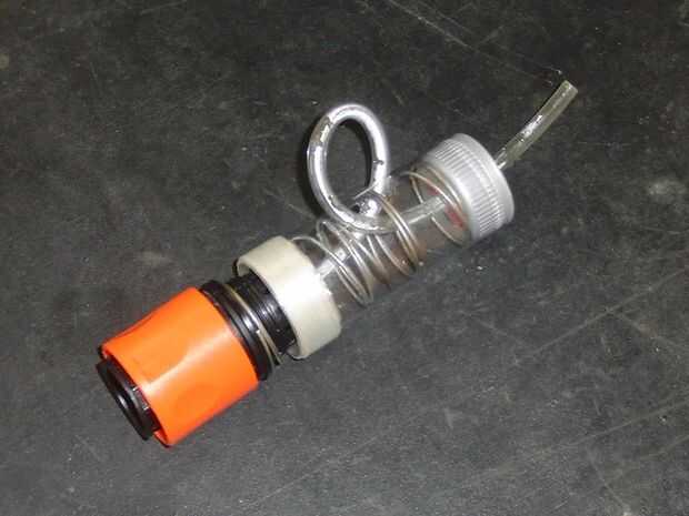 Hilo 3 de los resortes completamente sobre la tubería, con el primer resorte empujó hasta la brida de la conexión rápida y la cuarta primavera debe ser enhebrada sólo parcialmente. Deje que la tubería emerge por el lado de la primavera 4.