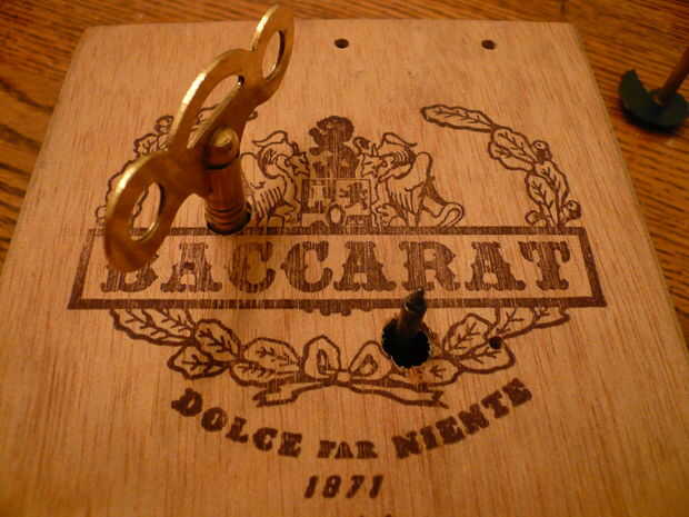 Cerrar la tapa de la caja y ver donde el mensaje llega a la tapa. Aplique un poco de presión para hacer una impresión en la madera. Para impedir que la caja se astille, poner cinta adhesiva en ambos lados de la tapa donde va ser perforación. Puesto que la tapa no va en línea con la impresión cuando se cierra, tienes que hacer poco a poco hacia las bisagras de su marca. Utilice una broca más grande que el post para darle una pequeña sala y evitar atascos, así como ayudar a la caja para cerrar. Desde el interior del taladro y apoyo de la tapa sobre un trozo plano de madera para evitar astilladuras. Repita este paso para el segundo post que sale el centro del acero del resorte - este post es en forma de cuadrado y girando con la llave se enrolle el acero, alimentar el chisme. El agujero debe ser lo suficientemente grande como para permitir que la clave para insertarse.